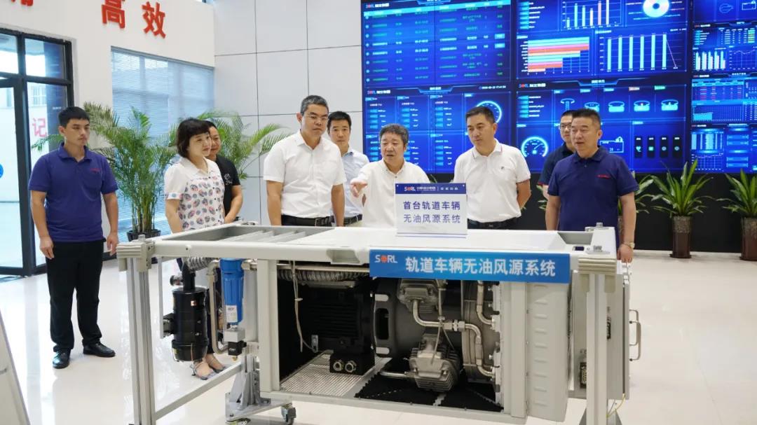 在得知該風源系統采用的無油空壓技術國內首創,世界領先,產品能夠對標國際先進,實現國產替代時,于福堅區長對瑞立的技術研發水平和軌道產業發展成績表示贊賞。他表示,瑞立通過自主研發,解決了中國高鐵“卡脖子”的技術難題,成功助力復興號,這種實業報國情懷令人欽佩。