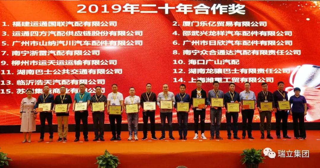 瑞立從創立到現在,產品質量及售后服務得到客戶的高度認可,公司品牌知名度在行業內持續提升,這得益于全體瑞立人的辛勤付出,更離不開廣大客戶朋友的支持與幫助。在下午舉行的大會上,瑞立對榮獲三十年合作獎、二十年合作獎、戰略合作獎、優秀經銷商、新產品合作獎等5大獎項的供應商進行了隆重表彰。戰略合作客戶紛紛表示,面對新的市場形勢,將滿懷信心與瑞立同心致遠、有效協同,攜手并肩、共贏未來!